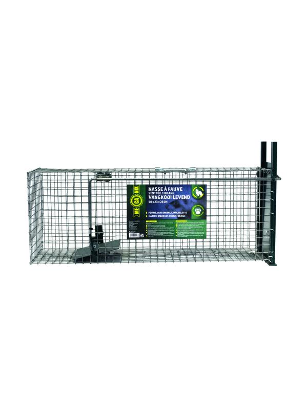 Grote gegalvaniseerde vangkooi om marters, wilde katten, konijnen, wezels, eekhoorns en andere dieren van gelijkaardige grootte levend te vangen zonder ze kwetsen. 60x23x25cm