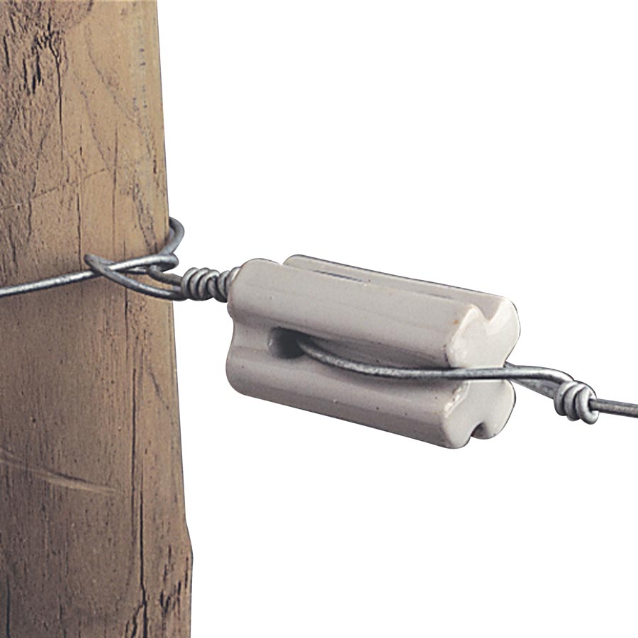 Porseleinen isolator voor houten hoekpalen. Geschikt voor draad. Bevestiging aan een begin- of eindpaal. Paard