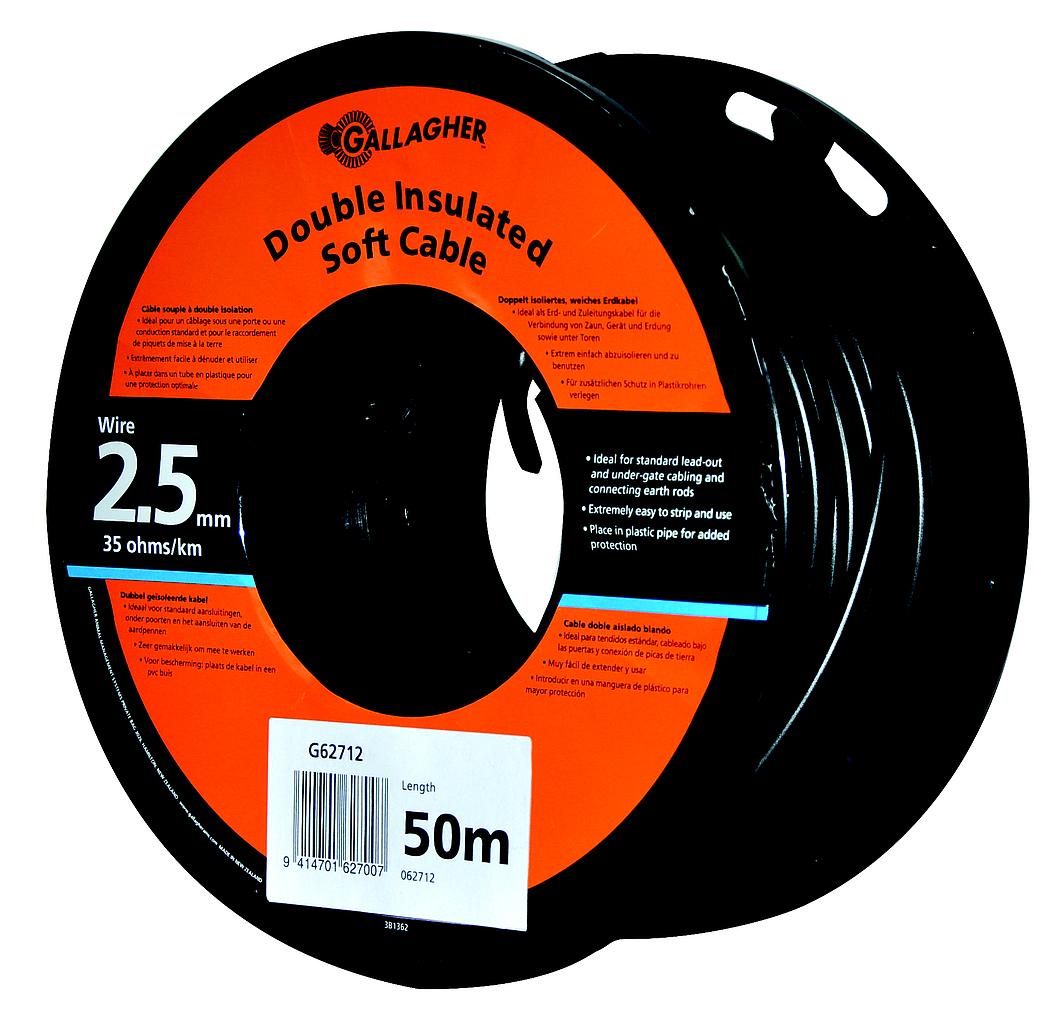 Dubbel geïsoleerde aanvoerkabel om het schrikdraadapparaat te verbinden met de afrastering en om (ondergrondse) verbindingen te maken (bijv. poorten). Door de kern van 2.5mm gegalvaniseerd draad tevens geschikt voor afstanden langer dan 30m. 0