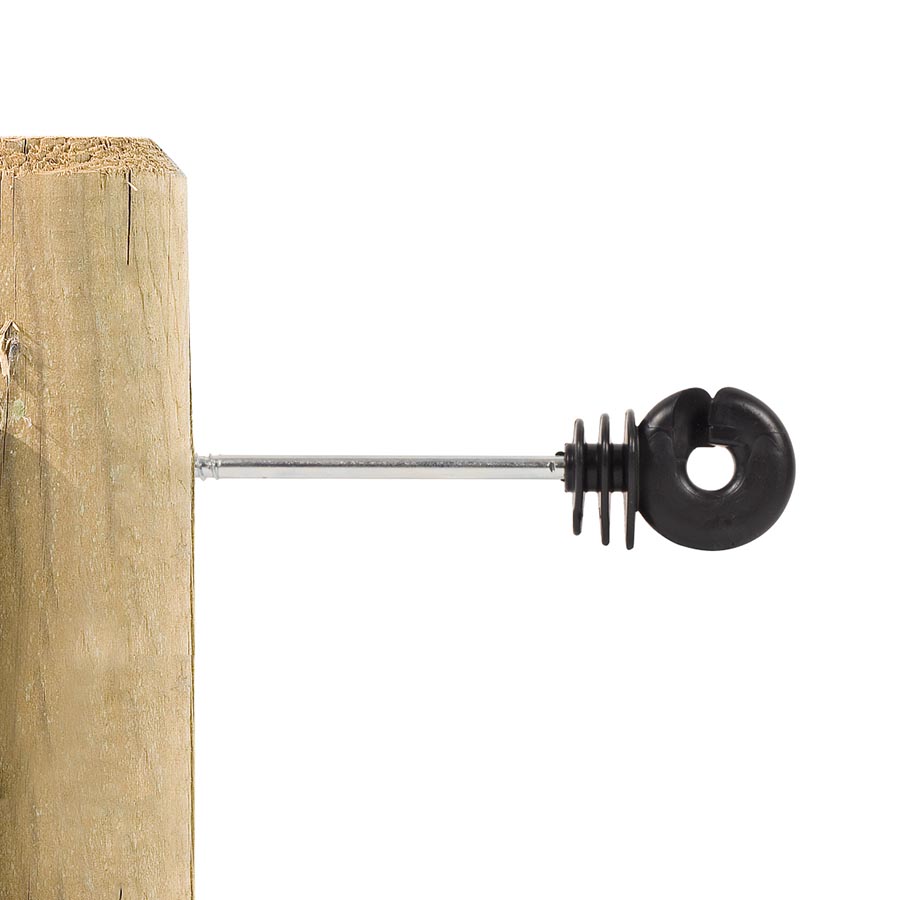 Solide hoge kwaliteit afstandschroefisolator (10cm) Zonder metalen kern. Voor houten palen. Geschikt voor cord en (kunstof)draad. Paard