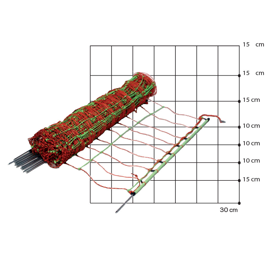 Compleet en gebruiksvriendelijk verplaatsbaar afrasteringsnet voor schapen en lammeren. Tevens geschikt als begrenzing bij sloten. zodat zelfs pasgeboren lammeren met een optimale veiligheid kunnen meeweiden. Lengte: 50m. Inclusief 14 palen met enkele pen die in het net gemonteerd zijn. Meerdere netten zijn gemakkelijk met elkaar te verbinden. Schaap