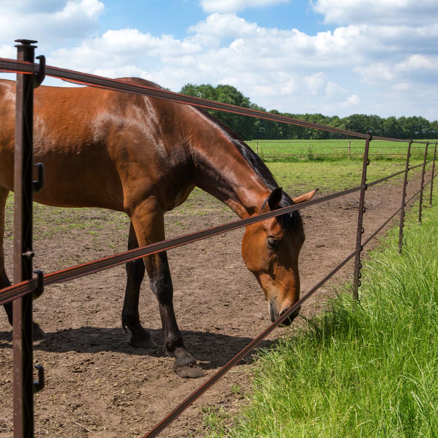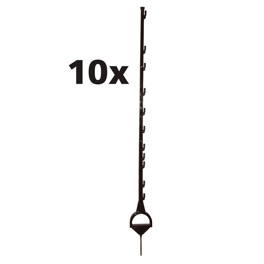 Unieke en duurzame paal van 1.55m voor semi-permanente paardenafrasteringen. Eenvoudig te plaatsen door de handige stijgbeugelvoet. Met 11 genummerde draadhouders. geschikt voor lint tot 20mm. cord en kunststofdraad. Het unieke twist & lock systeem garandeert een eenvoudige en solide bevestiging van geleiders met een maximale draadhoogte van 1.35m. Paard