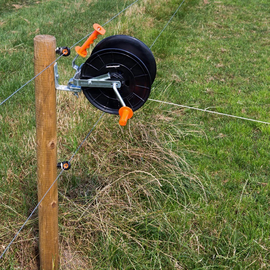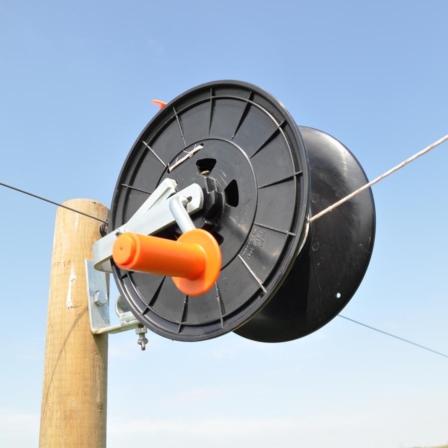 Een degelijke haspel met blokkeringspal voor het op- en afdraaien van kunststofdraad. Geschikt voor maximaal 500 meter Vidoflex. 200 meter lint of 200 meter Cord. Voorzien van geïsoleerde handgreep. Paard