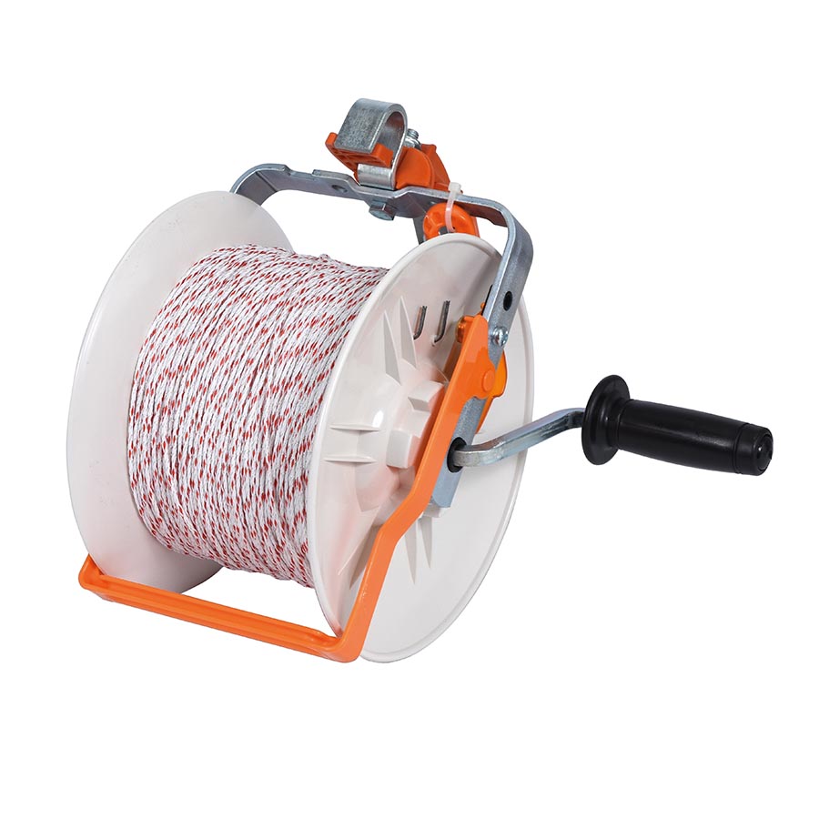 Voorgewonden haspel met 3:1 versnellingsmechanisme. Voorzien van een robuuste handgreep. Inclusief 500 m kunststofdraad. Kan eenvoudig worden bevestigd aan de haspelhoekpalen. Inclusief multifunctionele mobiele handgreep dus klaar voor gebruik. 0