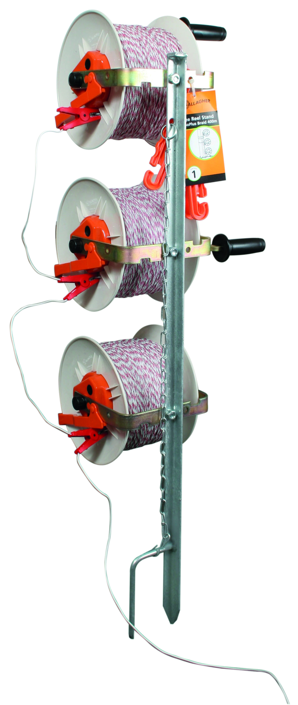 Hét product voor tijdelijke afrastering of stripgrazen. Op deze haspelhoekpaal zitten drie haspels (061139) bevestigt met versnelling en 400m Vidoflex kunststofdraad. Hierdoor kunt u snel een gemakkelijk een stuk afzetten. De paalhoogte van de haspelhoekpaal is 1.07m.