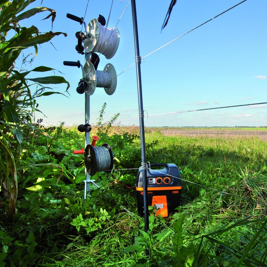 Eenvoudige stevige paal voor mobiele afrasteringen tot 1.50m (#063475) of 1.80m (#063482). Veertjes #063499 zijn op alle gewenste hoogtes te monteren. Topisolator is afneembaar zodat de veertjes eenvoudig bevestigd kunnen worden. Paard