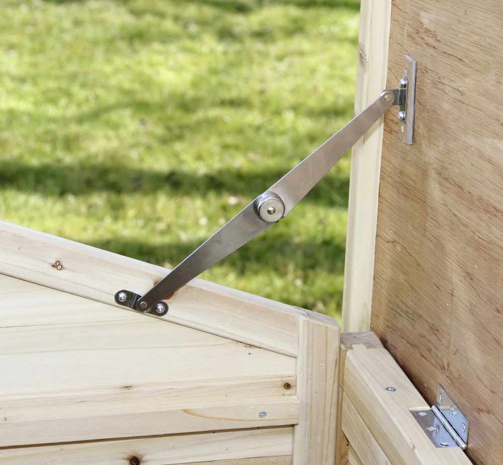 Om de levensduur van het hok te verlengen, dient u het hout te behandelen met een geschikte verfsoort of lak.