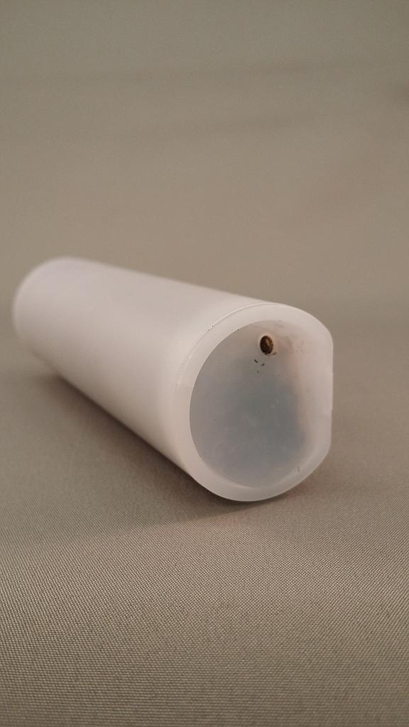 Om te controleren of, en hoe groot de bloedmijt aantasting is kunt u bij kippen en volièrevogels gebruik maken van controlebuisjes. Dit zijn kleine stukjes PVC buis met daarin opgerold een stukje golfkarton. De bloedmijten gebruiken de ruimte tussen de golfjes als schuilplaats als ze van hun nachtelijke tochten terug komen. Door wekelijks de kartonnetjes er uit te halen en te controleren kunt u op een eenvoudige wijze zien of er bloedmijten aanwezig zijn, en zo ja, in welke mate. Op de foto's hierboven ziet u drie verschillende niveaus van aantasting. Bij het laagste niveau zal de schade aan de dieren nog beperkt zijn, maar bij de beide andere niveaus ondervinden de dieren veel last van de aantasting.