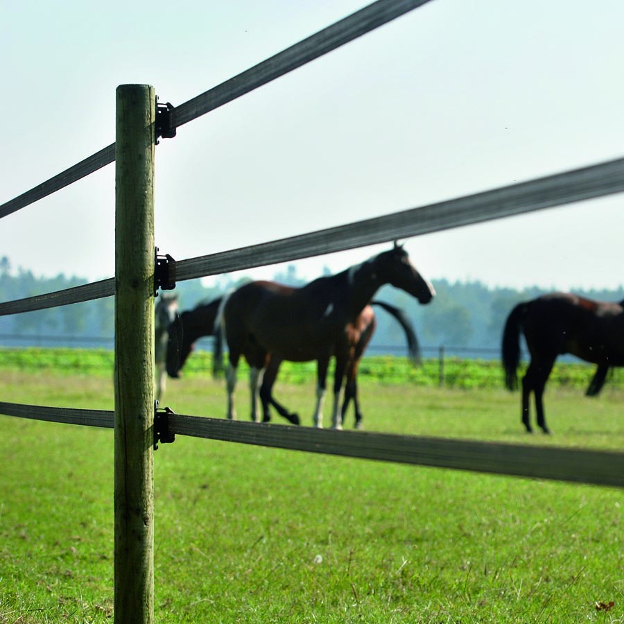 Terra PowerLine lint met een zwarte kantdraad ter versterking en met 11 dikke roestvrijstalen draden en 1 lichtmetalen draad voor een uitstekende geleiding. Geschikt voor semi-permanente paardenafrasteringen. Paard