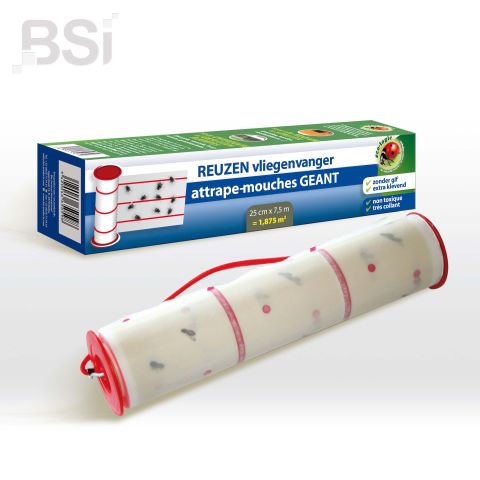 REUZEN-VLIEGENVANGER Vliegenvanger-rol van 1,875 m². 25 cm breed - 7,5 m lang. ATTRAPE-MOUCHES GEANT Rouleau attrape mouches de 1,875 m². largeur 25 cm - longueur 7,5 m.