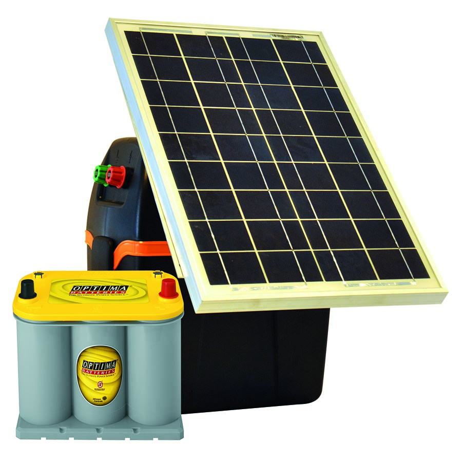 De ultieme solarcombinatie: de vertrouwde B200 met 1.45 Joules ladingsenergie (voor afrasteringen tot 20 km). gevoed door een Optima Yellowtop 3.7L. die wordt opgeladen door een 30W zonnepaneel. Voor een jarenlange betrouwbare en onderhoudsvrije werking. Paard